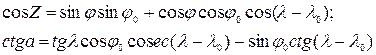 в равновеликих проекциях лучше вычислять по формулам тангенсов, которые в этих проекциях принимают вид: