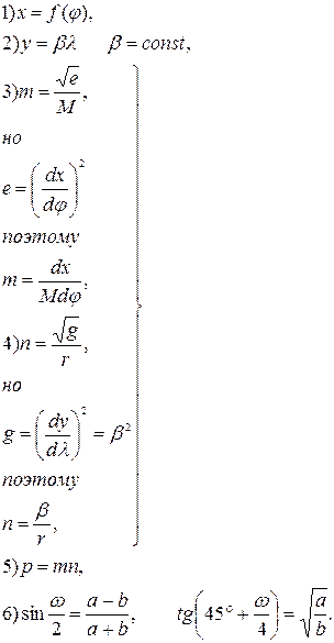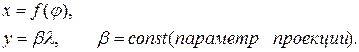 определяющую абсциссу проекции, находят при условии равноугольности, равновеликости или равнопромежуточности изображения; в соответствии с поставленными условиями цилиндрические проекции могут быть равноугольными, равновеликими, равнопромежуточными по меридианам. Кроме перечисленных проекций существуют произвольные проекции с заданным распределением искажений и перспективно-цилиндрические проекции, которые получают геометрическим путем.