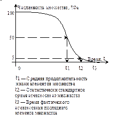 Рис. 7. Характер убыли элементов из первоначального состава множества с течением времени |