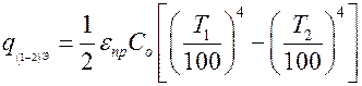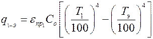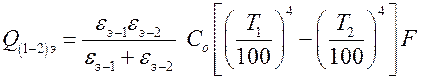 Результирующий тепловой поток между первым телом и экраном определится по формуле: