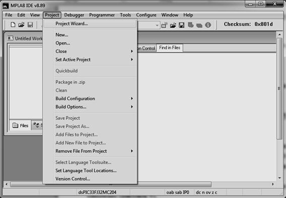 5. 1 Запустите MPLAB IDE. Выберите пункт меню «Project → Project Wizard…» (рисунок 18.1).