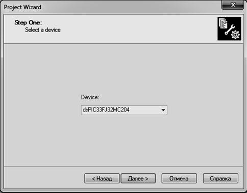 5. 3 В окне выбора микроконтроллера установите dsPIC33fj32mc204