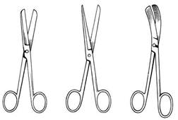 Как и другие хирургические инструменты, ножницы могут быть горизонтально изогнутыми, т. е. в плоскости стола и вертикально изогнутыми, которыевстречаются чаще.