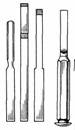 К разъединяющим инструментам (рис.6) относят распаторы (для отделения надкостницы от кости), долота и остеотомы (для пересечения костей - остеотомии), костные ложки Фолькманна и др. (для выскабливания кости), трепаны с набором фрез (для просверливания отверстий в костях).