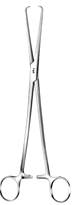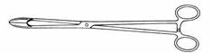 Корнцанг — специальный зажим, предназначенный для подачи стерильных инструментов и перевязочного материала, для введения тампонов и дренажей. Корнцанг имеет губки овальной формы, на рабочей поверхности которых располагаются овальное углубление и косая насечка (Рис.12).
