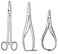 Иглодержатель — хирургический инструмент, предназначенный для удержания хирургической иглы во время ее проведения через ткани при наложении швов (соединении тканей). Иглодержатель по конструкции имеет сходство с кровоостанавливающим зажимом (Рис.15).