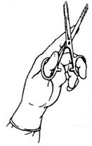| Рис. 27. Правильное удержание ножниц | Рис. 28. Правильное удержание пинцета |