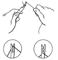 | Рис. 29. Техника введения нити в ушко иглы | Рис.30 Техника прошивания ткани |