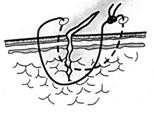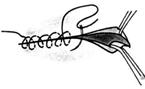 При наложении швов следует соразмерять толщину нити и иглы. Нить должна быть введена во вторую прорезь (Рис.29), что обеспечивает достаточную прочность ее фиксации в игле. Исключением являются толстые нити, которые оставляют в первой прорези ушка иглы.