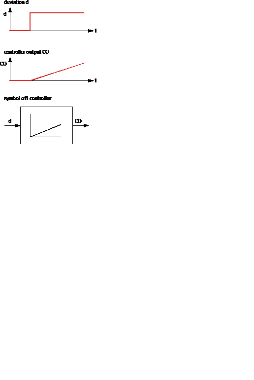 Если на вход регулятора интегрального действия поступает постоянный сигнал, то изменение выходного значения происходит непрерывно до тех пор, пока отклонение системы не будет компенсировано. Регулирующая переменная регулятора интегрального действия пропорциональна площади на графике зависимости отклонения системы от времени.