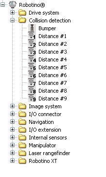 Функциональный блок для датчиков расстояния находится в библиотеке функциональных блоков Robotino® Collision detection (Обнаружение столкновений Robotino® )