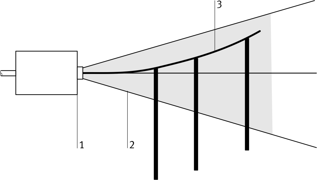 Излучатель/приемник (1) Диапазон передачи (2) График чувствительности (3)