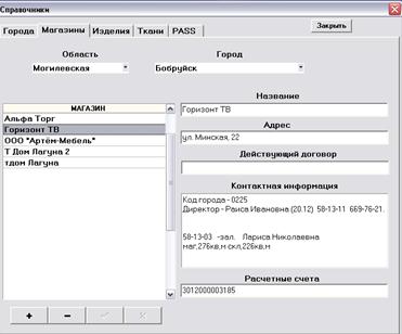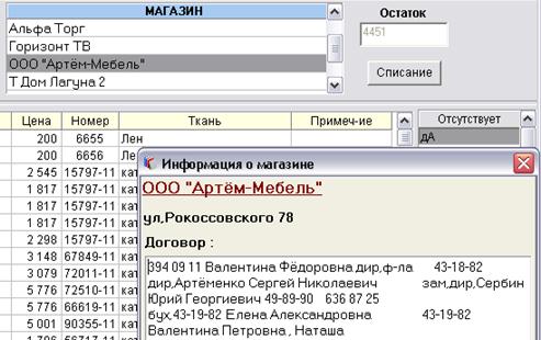Двойным щелчком мыши, нажимая на название магазина, получаем полную информацию о магазине, контактных лицах …(рис. 24)