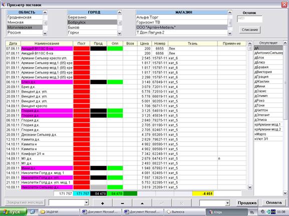 Цифры внизу основного окна отражают поставку, продажу и оплату в денежном выражении за действующий месяц.