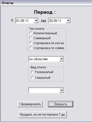 5.4 Пункт «Отчёты» (21, рис. 1) - здесь Вы можете получить общую информацию о продажах изделий во всех регионах, тенденции изменения продаж, как в суммарном так и количественном выражении (рис. 27).