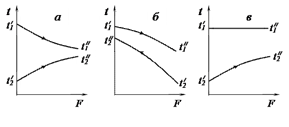 На рис., в представлен случай, когда пар конденсируется при постоянной температуре, а другой теплоноситель нагревается. Для этого случая направление движения жидкости, которая нагревается, не имеет значения.