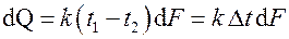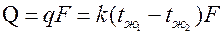 – местные температуры горячего и холодного теплоносителей. Тепловой поток через всю поверхность F найдется, как
