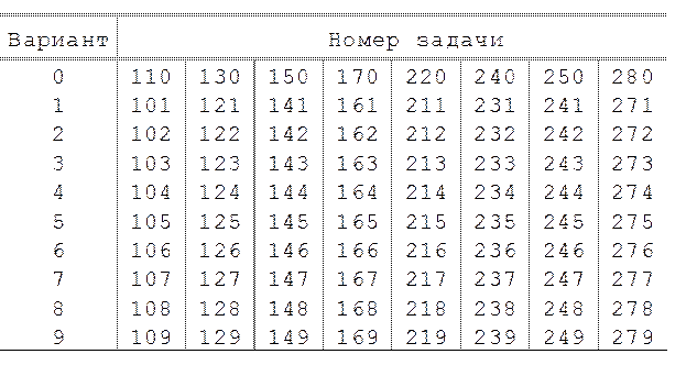 При изучении курса физики студенты в зависимости от специализации выполняют от одной до четырех контрольных работ. В каждой из них необходимо решить восемь задач того варианта, номер которого совпадает с последней цифрой шифра зачетной книжки студента. Номера задач для каждого варианта приведены в табл. 1.1–1.10.