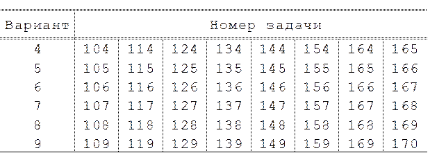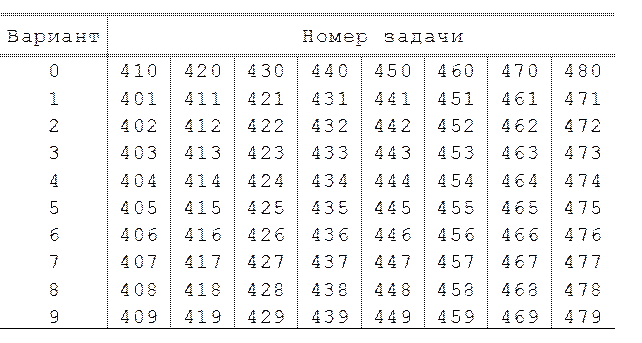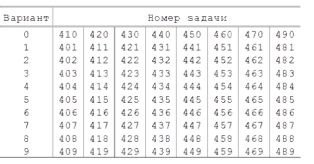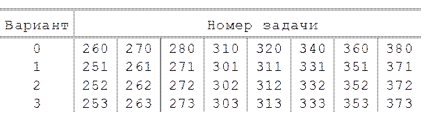 Номера задач контрольной работы № 4 для студентов, выполняющих четыре контрольные работы