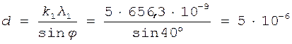Пример 2. На дифракционную решетку нормально падает пучок света от разрядной трубки. Чему должна быть равна постоянная дифракционной решетки d, чтобы в направлении