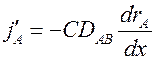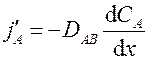 – коэффициент диффузии вещества А в вещество В, м2/с; x – направление, в котором изменяется поток массы, м.