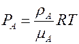 m – молекулярная масса смеси, кг/кмоль. Уравнение состояния идеального газа для одного компонента (например, А), парциальное давление которого