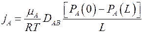Для определения плотности диффузионного потока через парциальные давления проинтегрируем выражения (1.113), вследствие чего получим