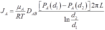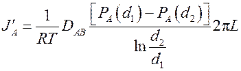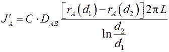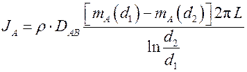 соответственно, диффундирует через стенку цилиндра, то по аналогии с теплопроводностью выражение для потока вещества через цилиндрическую стенку запишется в виде