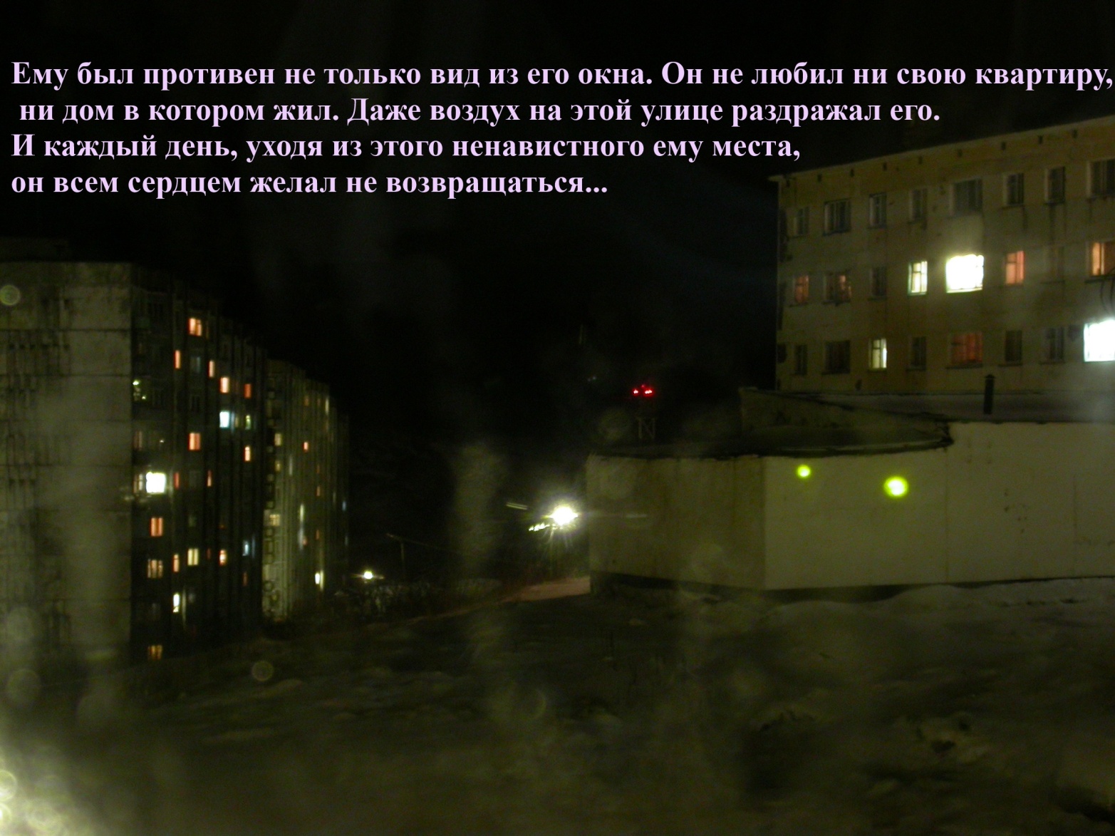 Луддиты, фертильные самки, скучные люди жующие невкусную еду в зассаных подьездах, под ногами хрустят шприцы, Окна выходят во двор. Пустой двор с помойкой возле неубранной дороги, напротив окна стоит другой такой же серый и обшарпанный дом. коробка-дом муравейник со слепыми стеклами окон. Дом закрывает вид на горизонт и загораживает небо. А если бы он и ничего не загораживал, наблюдатель все равно бы ничего не смог разглядеть. Потому что не хочет. Но и еще потому все скрыл смог..Это мой мир. Это и твой мир тоже. Можно всего этого не замечать, находясь на другой грани сознания. Может кто то и умеет это делать, но не я. В первую очередь именно грязь и мрак мира бросаются в мне глаза. Пальмы и пляж это лишь краткий отпуск, а потом снова польет дождь, пахнущий машинным маслом, ледяной дождь. Но ненужно думать что в мокром и холодном мире нет своей прелести, даже в этом есть свое очарование, ведь лучше этого мы ничего не видели.