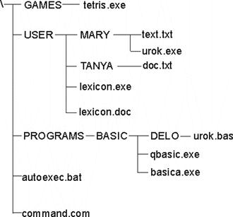 Пусть текущий каталог USER, тогда MARY\urok.doc определяет местонахождение файла urok.doc в подкаталоге MARY текущего каталога USER текущего дисковода