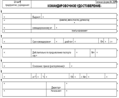 Рассмотрим технологию работы с таблицами на примере фрагмента командировочного удостоверения.