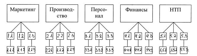 Второй уровень - это декомпозиция, т.е. разбивка дерева целей.