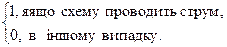 Функція провідності схеми, що складає з одного елемента x, для замикаючого контакту є f (x) = x, а для розмикального контакту f (x) = Ø x.