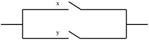 Функція провідності схеми, що складає із двох паралельно з'єднаних контактів x й y (рис. 4.2) є f (x, y) = x V y.