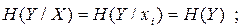. Середня умовна ентропія буде дорівнювати нулю, якщо поява будь якого символу xi, i = 1,2,3,…, M на виході першого джерела однозначно визначає символ на виході другого джерела. Тобто, спостерігаючи за виникненням символів на виході першого джерела, будемо мати повну інформацію про послідовність символів на виході другого джерела навіть за умов недоступності цього виходу для спостереження.
