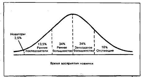 Люди заметно отличаются друг от друга своей готовностью к опробованию новых товаров. Восприимчивость к новому ¾ это «степень сравнительного опережения индивидом остальных членов своей общественной системы в восприятии новых идей». В каждой товарной сфере будут и свои первопроходцы, и их ранние последователи. Некоторые женщины первыми приемлют новую моду в одежде или новые бытовые приборы, такие, как микроволновые печи. Некоторые врачи первыми начинают прописывать новые лекарства26, некоторые фермеры первыми воспринимают новые агротехнические приемы27.