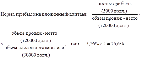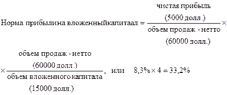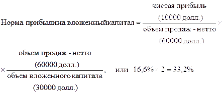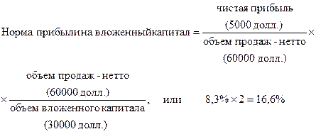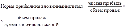 В качестве критерия оценки эффективности руководства часто пользуются показателем нормы прибыли на вложенный капитал, который рассчитывают на основе данных, содержащихся в отчете о результатах хозяйственной деятельности и балансовом отчете фирмы. Чаще всего для расчета этого показателя пользуются следующей формулой: