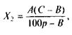 где A— объем изготовленного раствора, мл; С— фактическая концентрация раствора, %; В — требуемая концентрация раствора, %. Концентрация оказалась ниже требуемой. Массу лекарственного вещества Х2 (в г) для повышения концентрации полученного раствора вычисляют по формуле: