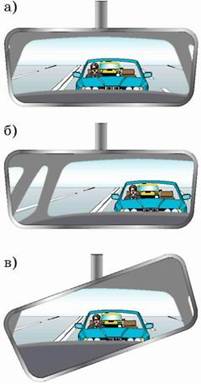 Рис. 4. Положения внутрисалонного зеркала: а) правильно; б) неправильно; в) неправильно