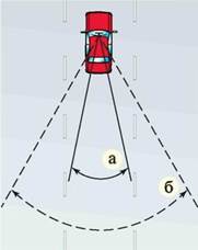 Рис. 6. Зона обзора дороги через: а – плоское зеркало; б – панорамное зеркало