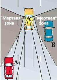Рис. 7. "Мертвые зоны" и регулировка боковых зеркал