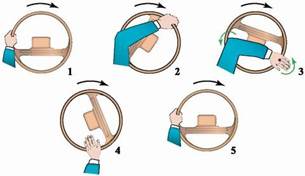 Насчет скорости, думаю, понятно – не надо переносить руку. А точность достигается тем, что кисть руки постоянно находится в одной и той же позиции на ободе рулевого колеса, и водитель точно знает, сколько оборотов или полуоборотов ему надо сделать, чтобы моментально поставить руль в положение прямолинейного движения. Однако хватит слов, давайте переходить к делу.