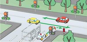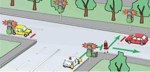 Рис. 95. Зеленая стрелка направо вместе с красным сигналом