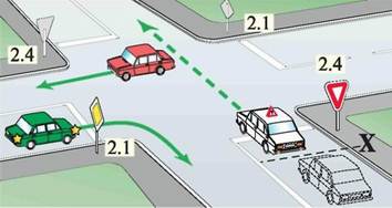 Рассматривать отдельно перекрестки со знаками 2.5 "Движение без остановки запрещено" не имеет смысла, так как разница будет заключаться лишь в одном – прежде чем въезжать на перекресток со знаком 2.5, в обязательном порядке надо полностью остановиться. Основной же смысл, который несут в себе знаки 2.4 и 2.5, одинаков – вы движетесь по второстепенной дороге.