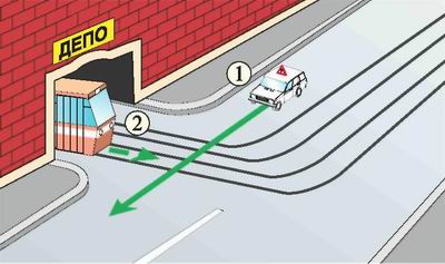 1. Он выезжает из депо, а вы движетесь по дороге (рис. 109).