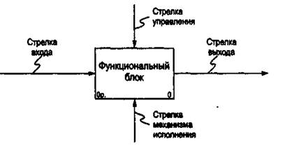 Стрелки управления. Стрелки управления отвечают за регулирование того, как и когда выполняется функциональный блок. Так как управление контролирует поведение функционального блока для обеспечения создания желаемого выхода, каждый функциональный блок должен иметь как минимум одну стрелку управления. Стрелки управления всегда входят в функциональный блок сверху.