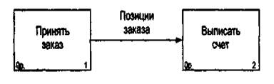 Стрелка выход-вход применяется, когда один из блоков должен полностью завершить работу перед началом работы другого блока. Так, на рис. 4 формирование счета должно предшествовать приему заказа.