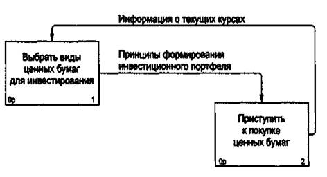 Стрелка выход — управление отражает ситуацию преобладания одного блока над другим, когда один блок управляет работой другого. На рис.5 принципы формирования инвестиционного портфеля влияют на поведение брокеров на бирже.