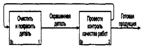 Стрелка выход — обратная связь на вход обычно применяется для описания циклов повторной обработки чего-либо (рис.8). Кроме того, связи выход- обратная связь на вход могут применяться в случае, если бракованная продукция может заново использоваться в качестве сырья, как это происходит, например, в процессе производства оконного стекла, когда разбитое стекло перемалывается и переплавляется заново вместе с исходным сырьем.