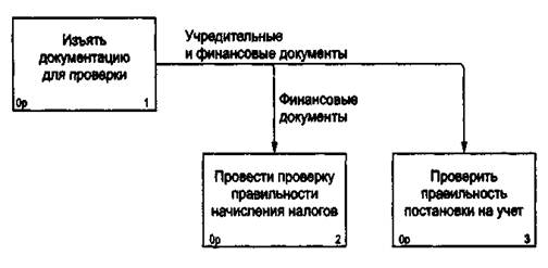 При моделировании непроизводственных предметных областей выходами, как правило, являются данные, в каком-либо виде обрабатываемые функциональным блоком. В этом случае важно, чтобы названия стрелок входа и выхода были достаточно различимы по своему смыслу. Например, блок "Прием пациентов" может иметь стрелку "Данные о пациенте" как на входе, так и на выходе. В такой ситуации входящую стрелку можно назвать "Предварительные данные о пациенте", а исходящую — "Подтвержденные данные о пациенте".